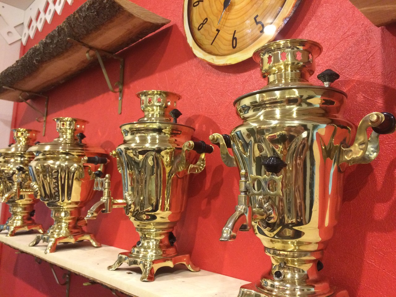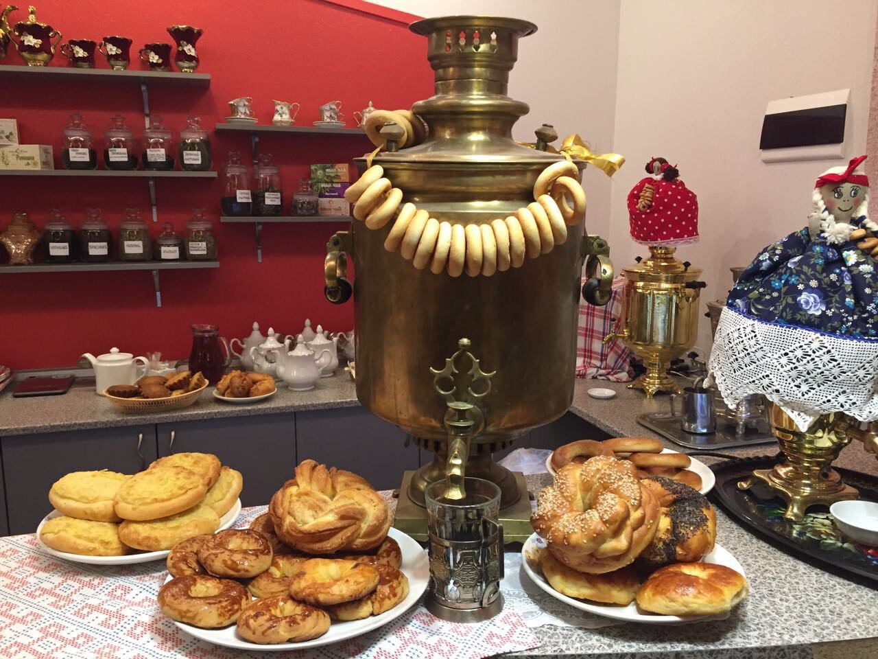 и всё это за большим общим столом с настоящим русским самоваром и ароматным чаем!